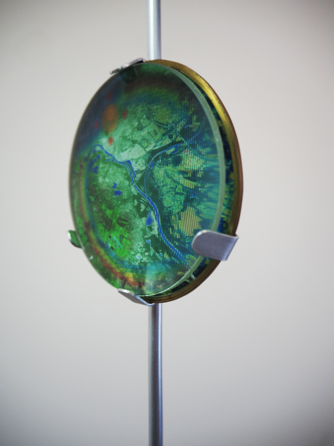 Hyperspectral imaging is a technology that captures images across many different wavelengths of light. Each wavelength reveals different information of the earth. For this sculpture I used hyperspectral images from the satellite Sentinel 2B and combined them together with images of archetypal symbols. Layers of knowledge form our understanding of the world.